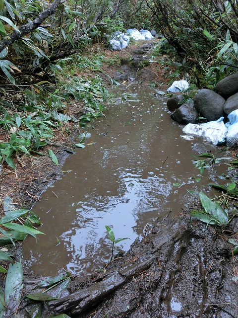 ・ぬかるみでも歩道の真ん中を歩く(ぬかるみを避けて歩くと、歩道脇の植物を傷めることになる)